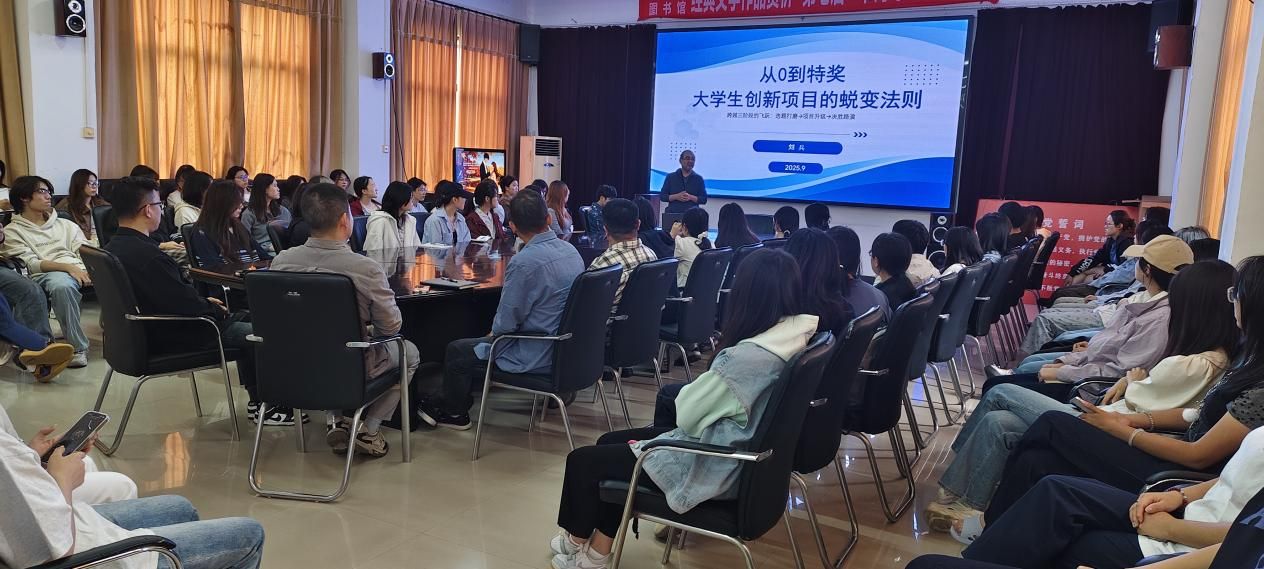 为助力大学生深耕创新创业实践、提升项目竞赛实力,9 月 25 日,湖北文理学院刘兵副教授以 “从 0 到特奖:大学生创新项目的蜕变法则” 为主题开展专题讲座,参会师生百余名。