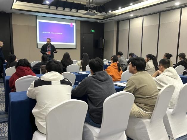 Munib Ahmed来自巴基斯坦,是伊斯兰堡国立现代语言大学教授,传播学博士。他的学术报告围绕“推动中国文化全球化传播,促进中外文明互鉴”这一主题,结合自身研究,阐释了南亚视角下中国传统美术的传播价值。他明确提出,“艺术符号的解读与转译是打破文化隔阂的关键钥匙”。在报告中,Munib Ahmed以丝绸之路与佛教文化为例,指出设计在跨文化传播中具有“无需语言却能直达心灵”的独特优势。